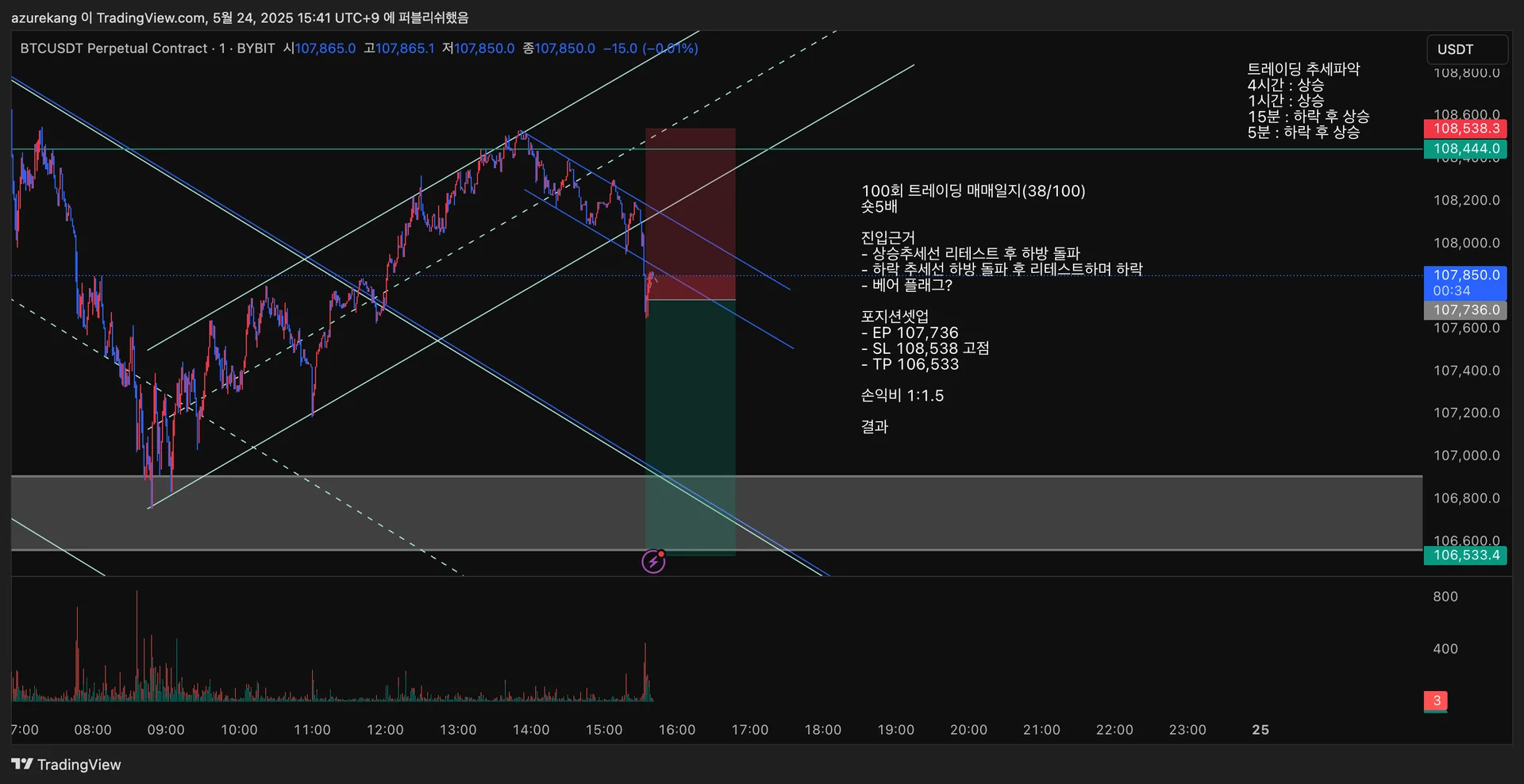 - 하락 추세선 하방 돌파 후 리테스트하며 하락