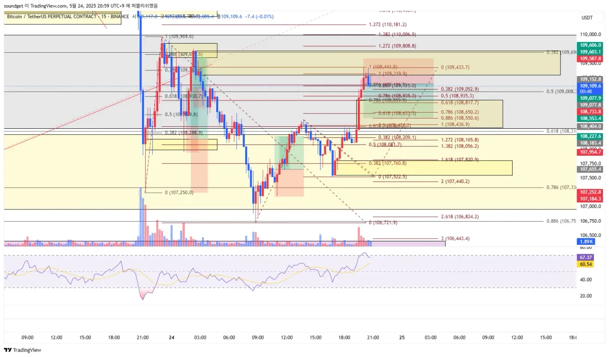 진입:109152.8/익절:108553.4/스탑:109551.6/손익비 1:1.5 (786에서 익절한다면 1:1.26)