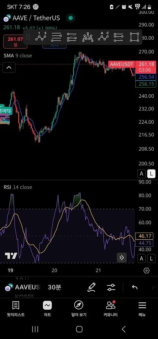 유동이 큰 알트로 보면 나오지않을까싶어 에이브 차트로 확인해보았습니다.