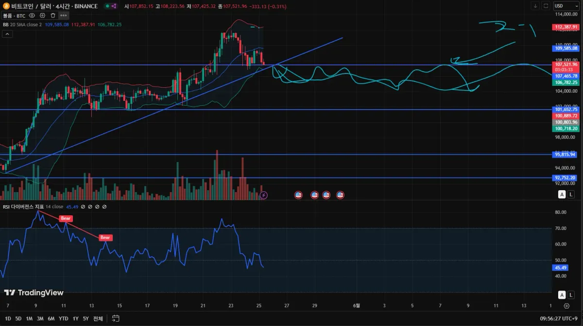 - 107251.96달러선에서 저항으로 작용하는지 지지로 확인하는지