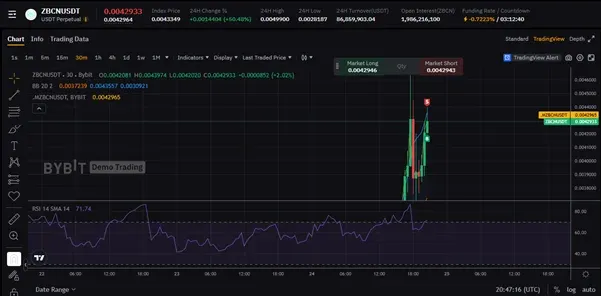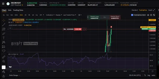 두번째로는 24시간 동안 변동량이 제일 높았던 페어 ZBCNUSDT로 테스트를 해봤습니다.
