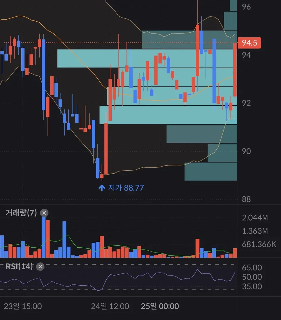 실전 특강 [단타 매매법] 강의에서 배운대로 분봉, 시간봉을 보며 볼린저밴드 하단 터치 + RSI 하단 터치시 매수하며 조금씩 비중을 늘렸습니다. 강의처럼 단타를 해야하는데 언제 매도를 해야할 지 확신이 안 서서 고민입니다. 감사합니다.