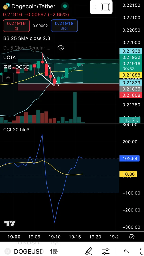 큰 시간봉에서 하락 관찰, 거래량 터지는것까지
