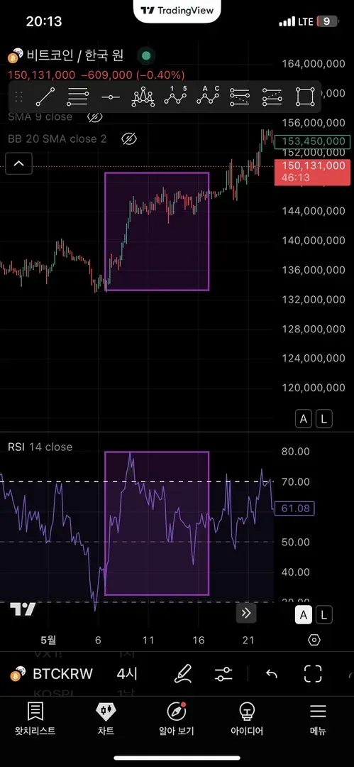 Rsi지수는 떨어지지만 버티다가 다시 매수가 많아져서 반등하였습니다