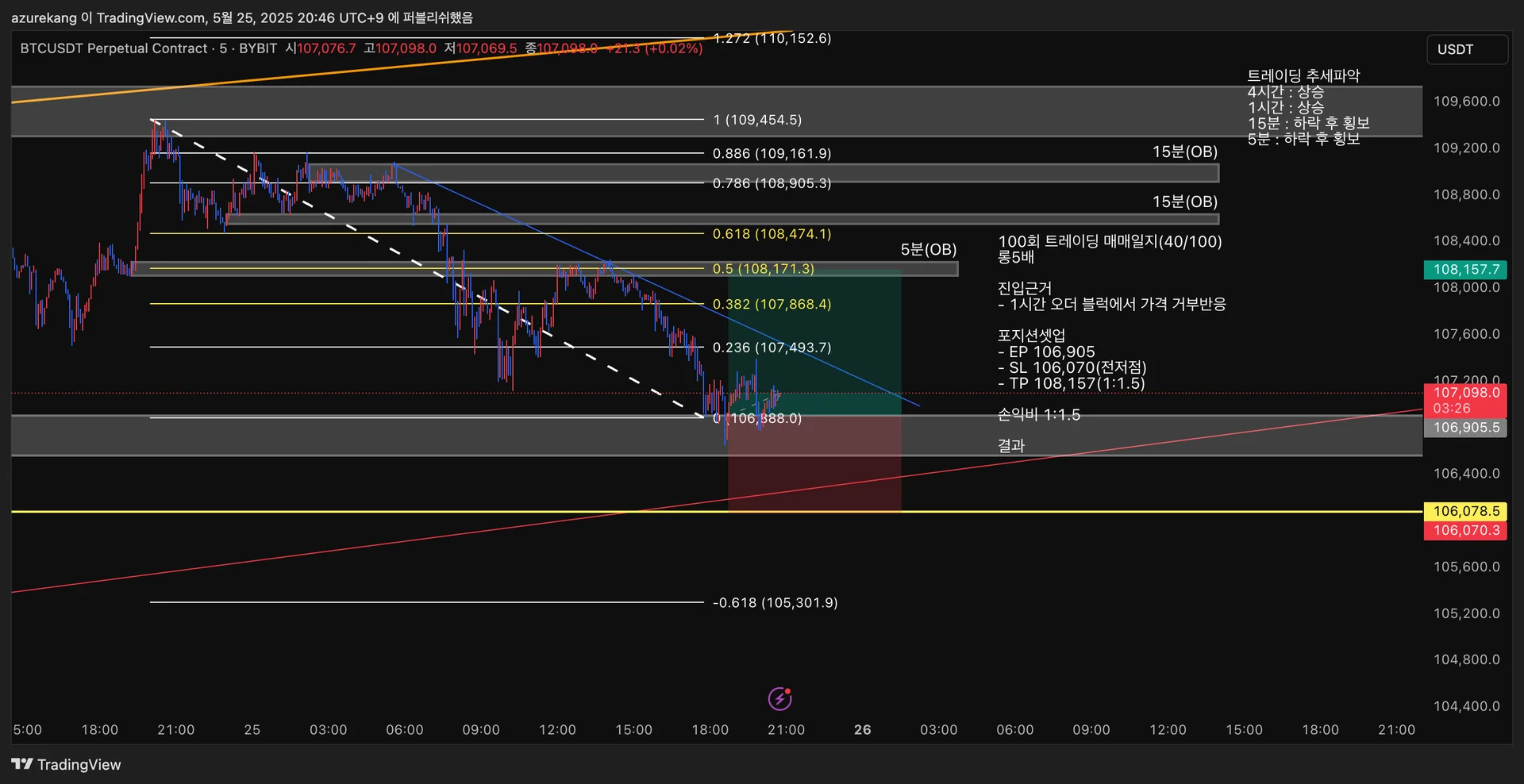 익절, 피보나치 기준으로 익절라인 수정 후 618 되돌림 자리에서 익절 20-20