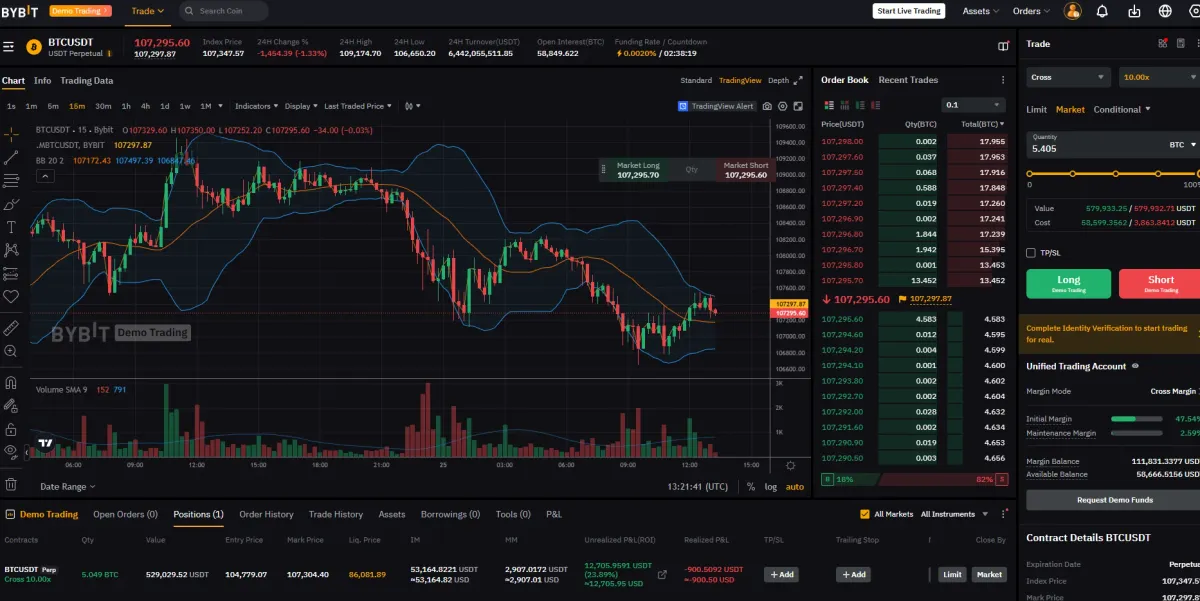 바이비트 모의트레딩으로 볼린저 밴드를 보며 수익을 내는 것을 스터디 중 입니다.