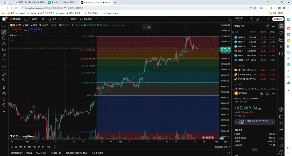 아직 돈이 없어서 피보나치 선만 그어서 봤습니다