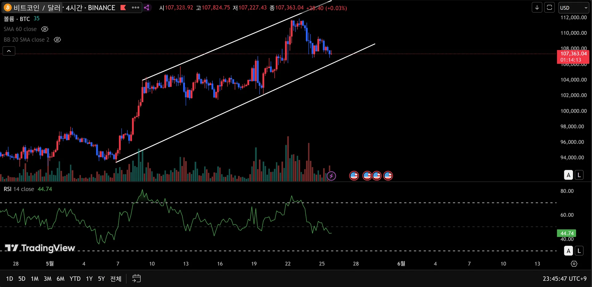 플래그 패턴이 나올것이라 예상하고 롱으로 배팅.