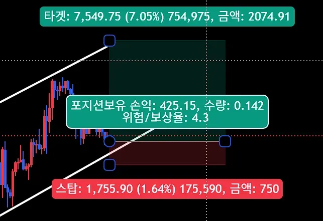 손절 금액 전체 금액에 10%로 잡고 6배로 포지션 들어갔습니다.
