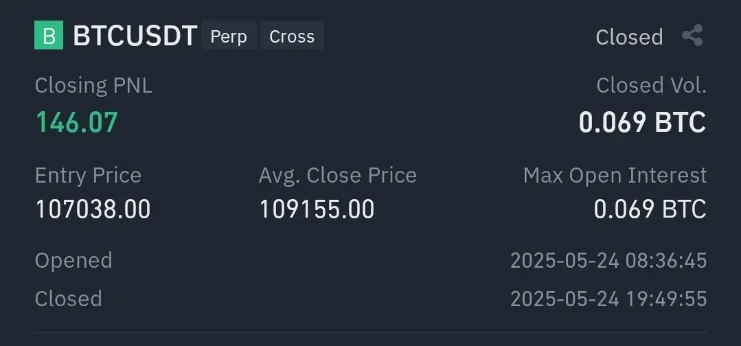 레버리지 5배 사용하여 약 10% 익절하였습니다.