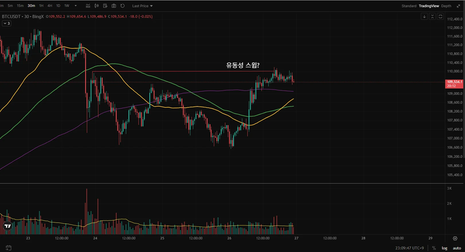 떨어져야 할 자리에서 떨어지지않고 , 지속적인 밑꼬리 캔들을 무수히 만들면서 진입가 이상으로 올린다....?