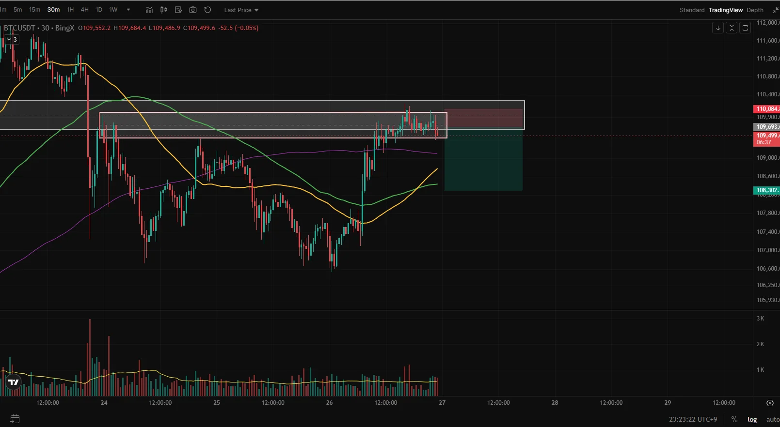 차트에 표시된 분홍 박스내에서 3번 정도의 저항이 보인다.(왜일까?)