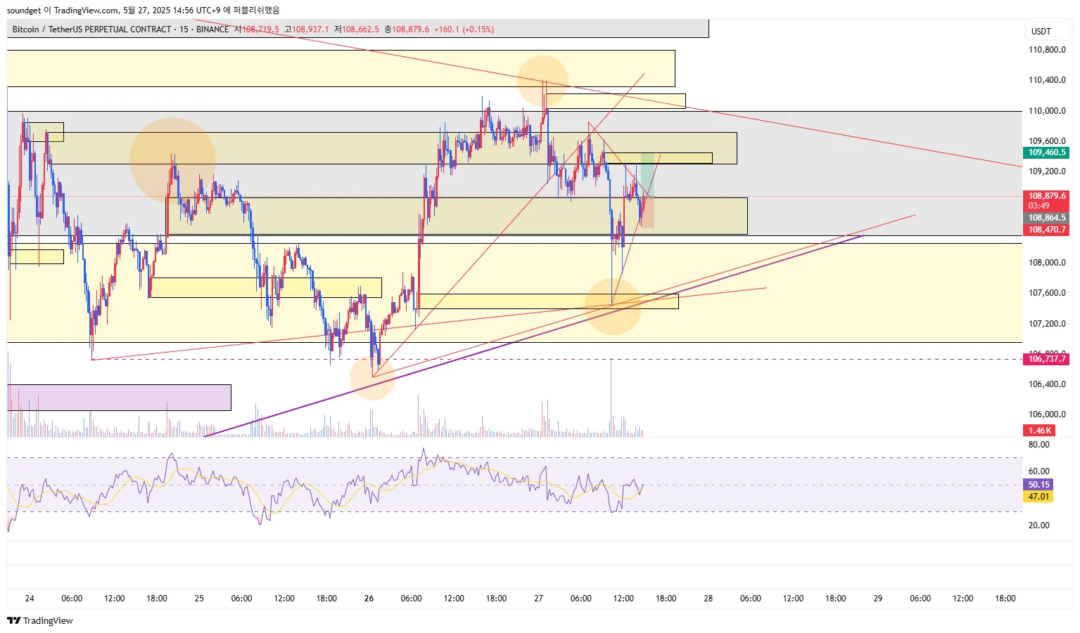 진입:108864.5/익절:109460.5/스탑:108470.7/손익비 1:1.5