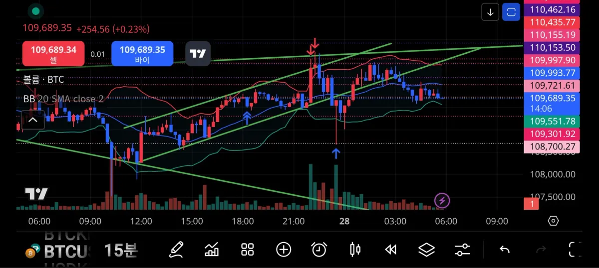 15분봉과 4시간 봉으로는 흐름을 봤습니다