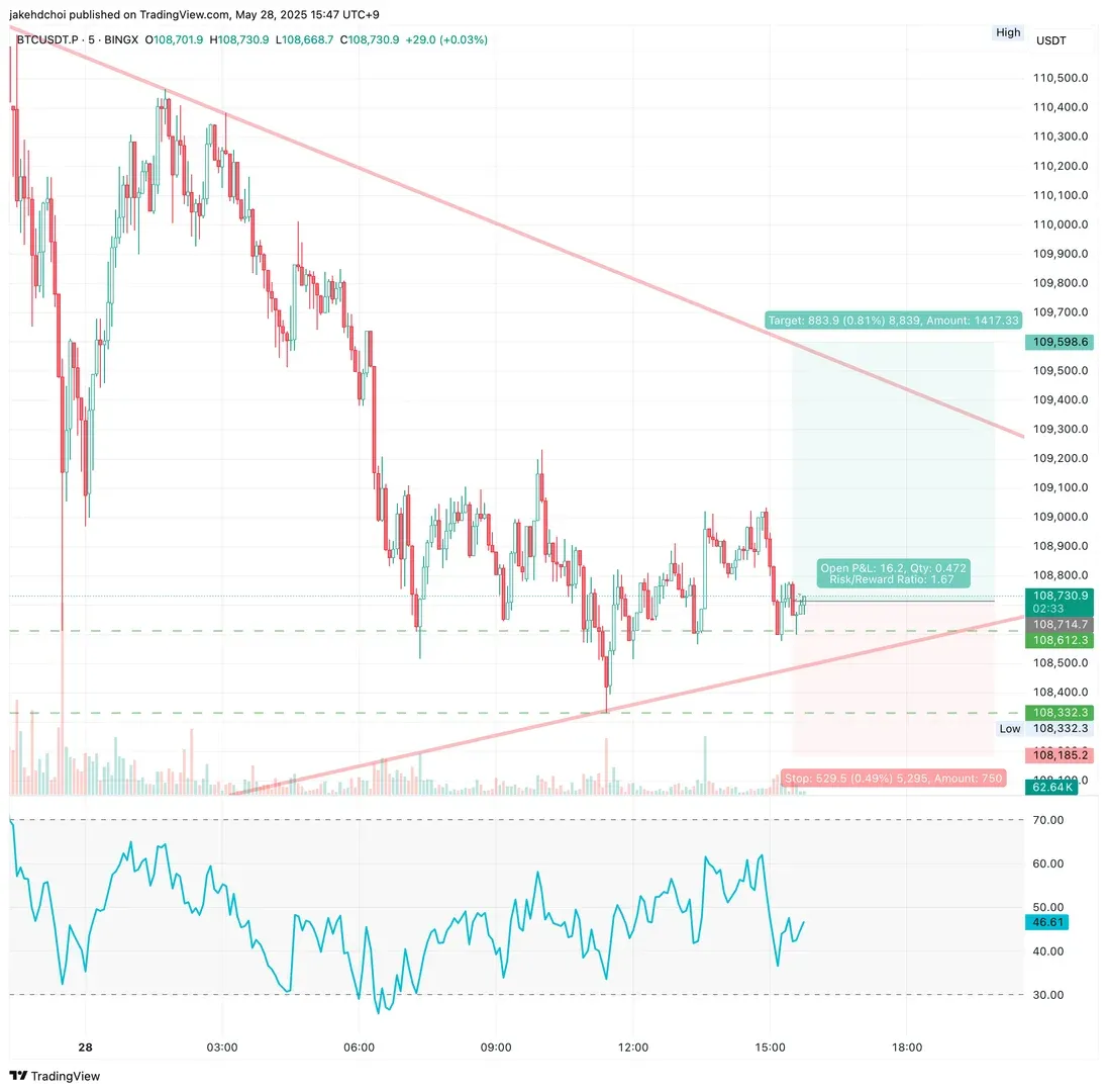 • 108.3k를 깨지 않을 것으로 예상, 깨지더라도 더 강한 상승 다이버전스