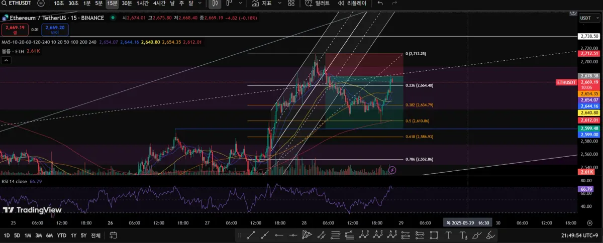 익절- 상승채널 형성 전 고점이 피보나치 0.5와 0.618사이에 있어서 지지역할해줄것으로 예상