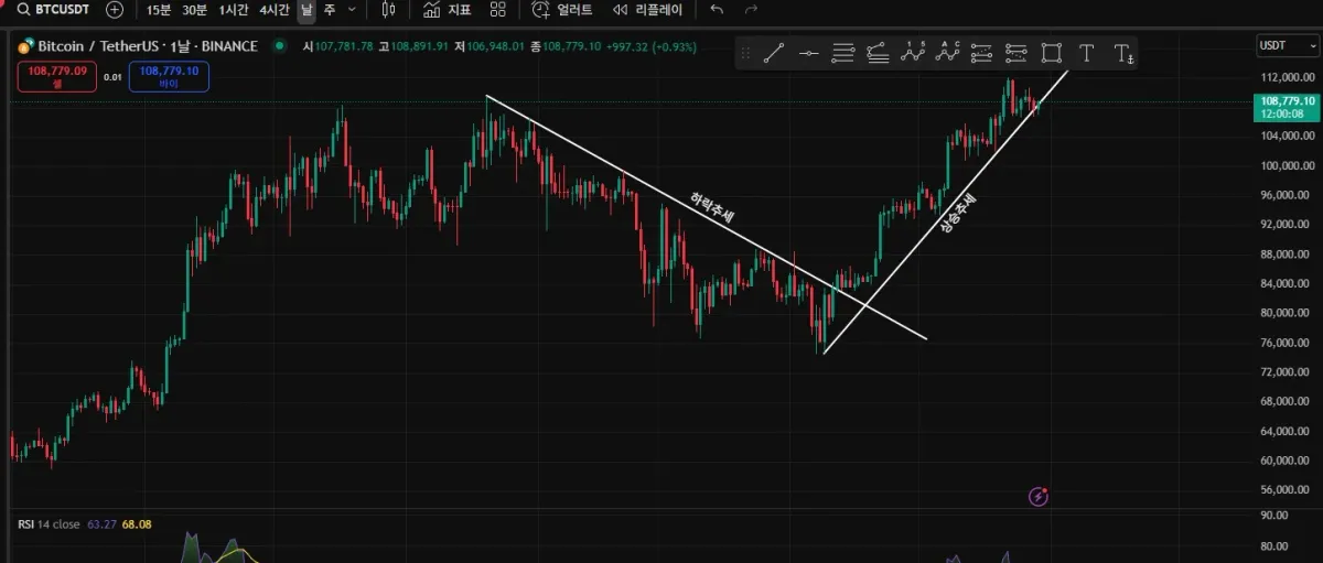 추세도 비트코인으로 확인해보았습니다. 차트는 날로 체크했습니다.