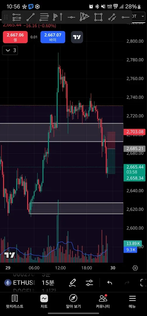 3) 하단 OB까지 박스권으로 판단하고 중간선에 익절