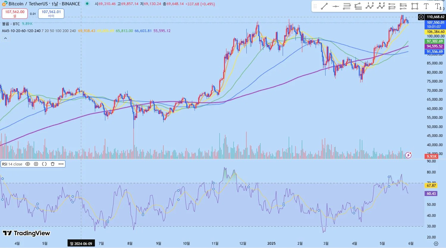 ㅇ RSI와 이동평균선 지표 추가해 보았습니다.