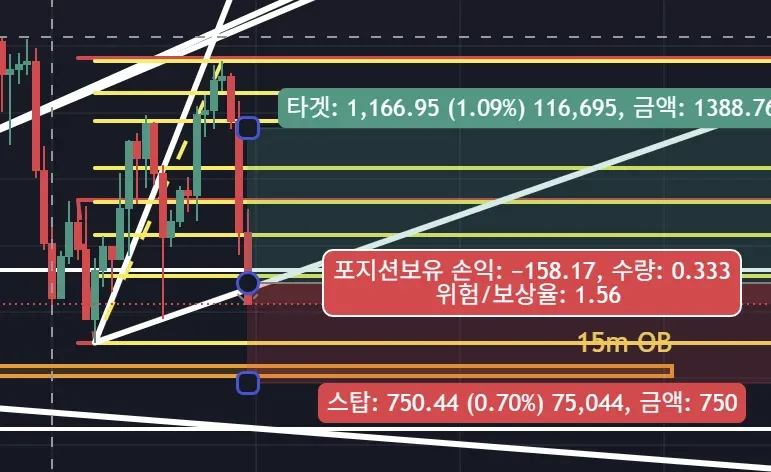 -손절은 저점을 다시 깨고 15m OB구간을 뚫은 구간을 찍어보니 -0.7% 구간이여서 진입하기로 함.
