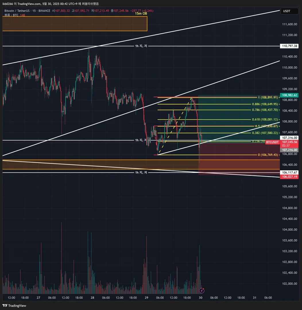 -손절은 저점을 다시 깨고 15m OB구간을 뚫은 구간을 찍어보니 -1% 이상 구간이여서 진입하기로 함.