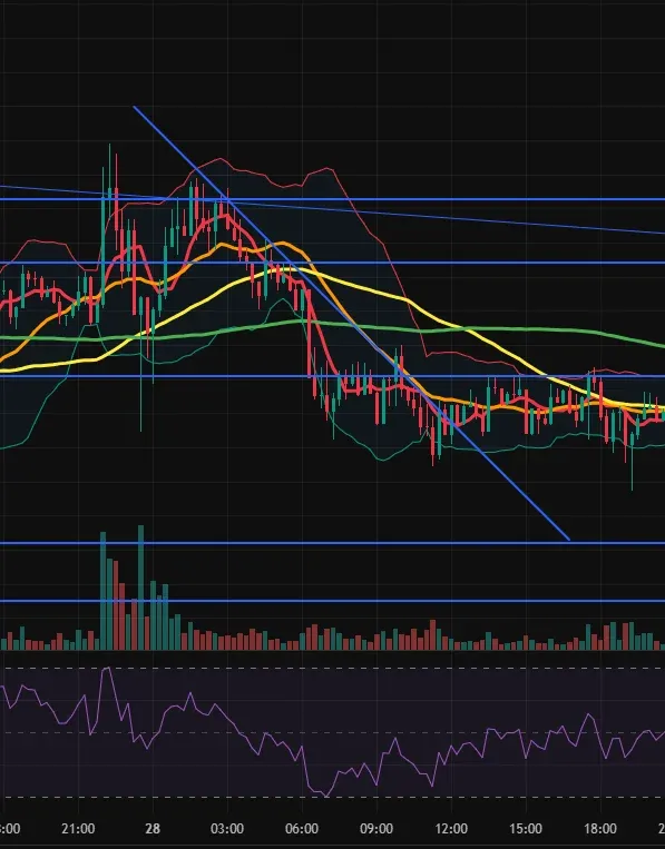 15분 봉으로 상승추세에서 하락추세로 차트 패턴이 잠시 바뀔때