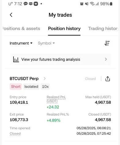 숏으로 약간의 익절을 했음.