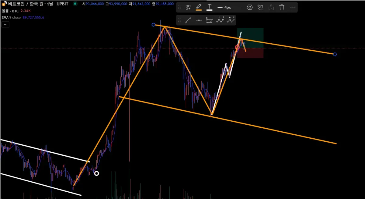 이렇게 나오려면 시간은 한참 걸리겠지만 아무래도 아래처럼 플래그패턴을 그리거나 디센딩 모양을 그릴지도 모르겠다는 생각을 했습니다. 다 지켜봐야 아는 사항이긴 하지만, 배운 내용을 찾으려다보니 이래저래 어떻게 그려질지가 조금 기대되네요