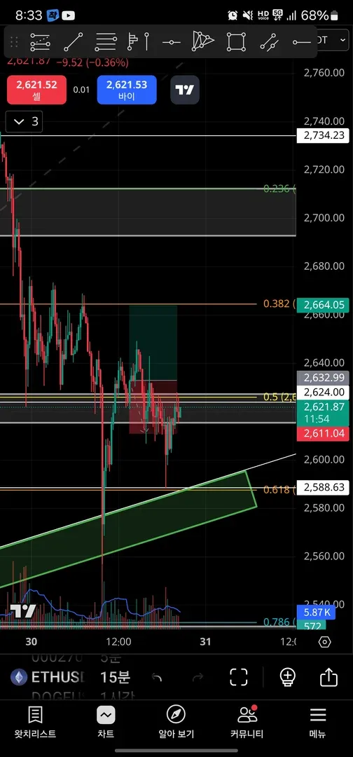 4) 0.5선과 지지저항 겹친곳 지지