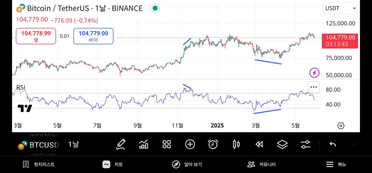 7일 챌린지[30일 챌린지 5기 2주차] rsi 다이버전스 구간 체크
