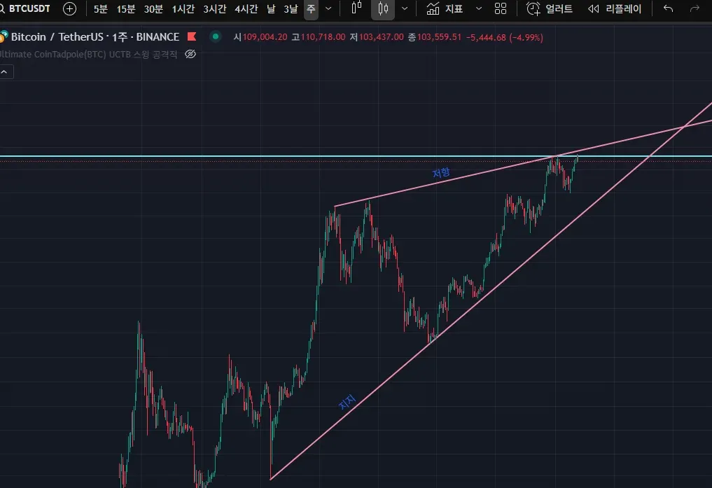 지지선의 힘을 얻고 삼각패턴 상방 돌파 할것으로 예상됨 (전체적으로 우상향 그래프 이기 때문)