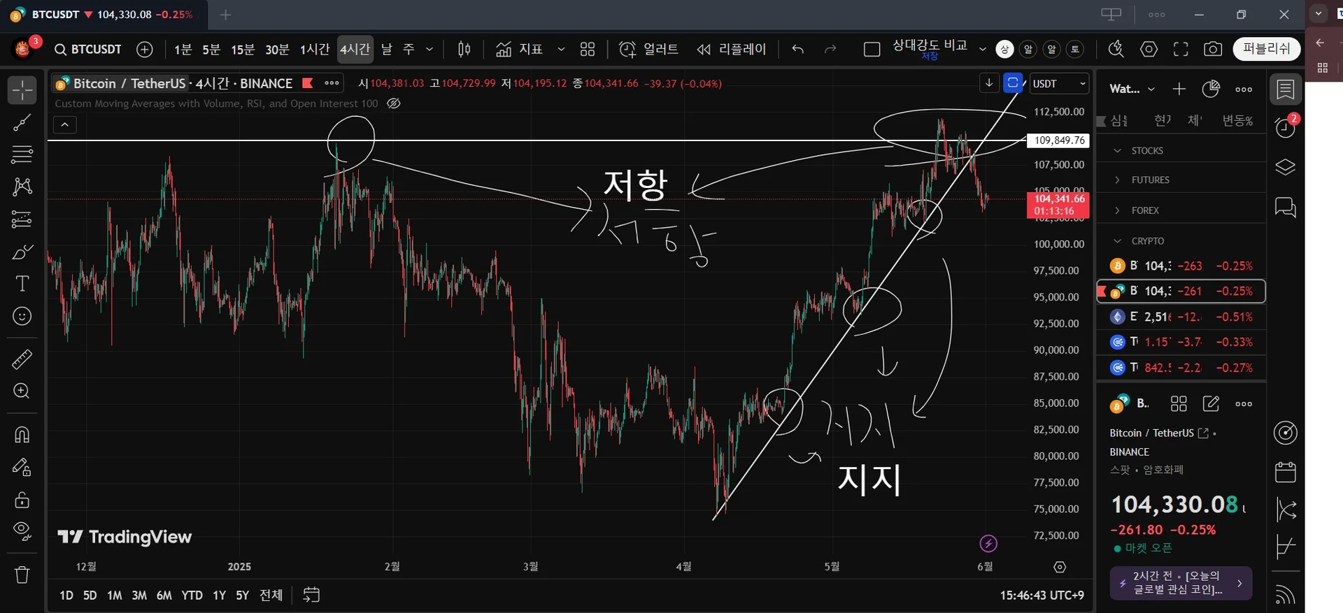 [30일 챌린지 30기 1주차] 트레이딩 뷰 지지와 추세 차트 작도