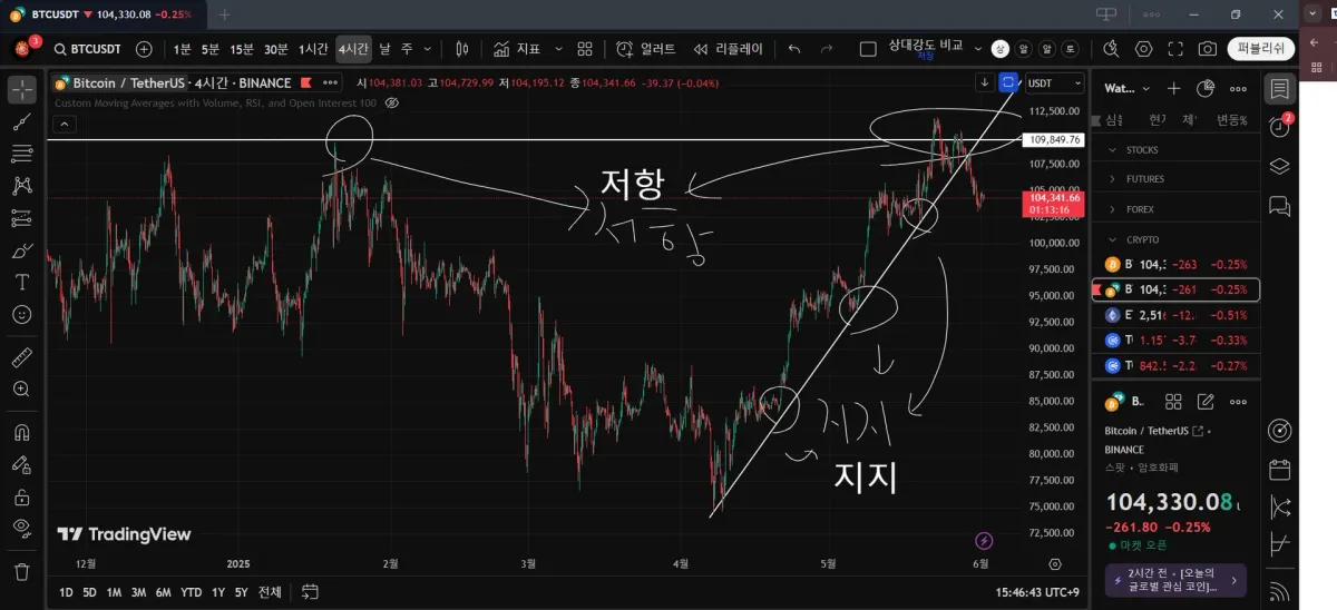 [30일 챌린지 30기 1주차] 트레이딩 뷰 지지와 추세 차트 작도
