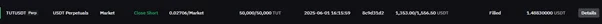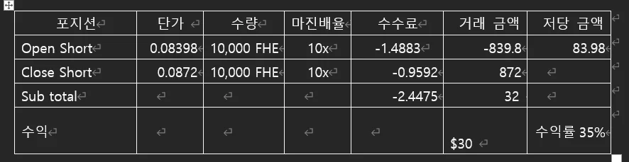 분명히 하락할 포인트라 생각하며 100,000 TUT쇼트 거래. 마진x10