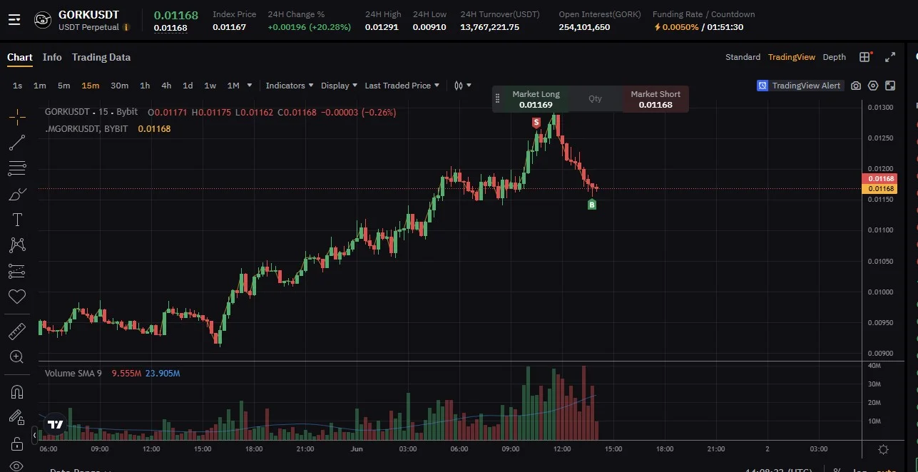 GORK 볼린저밴드 위 끝에서 숏타고 내려와서 익절했습니다.