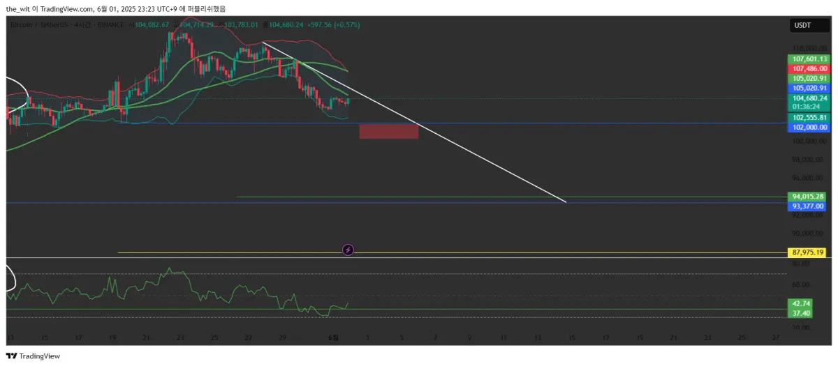 목표가는 더 밑에 있는 파란색인 지지라인까지 잡았습니다