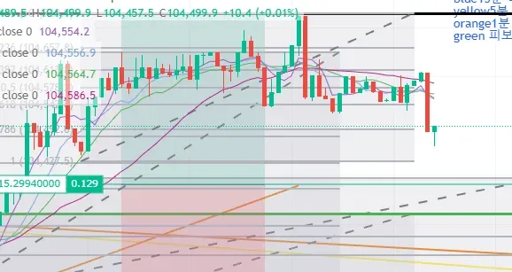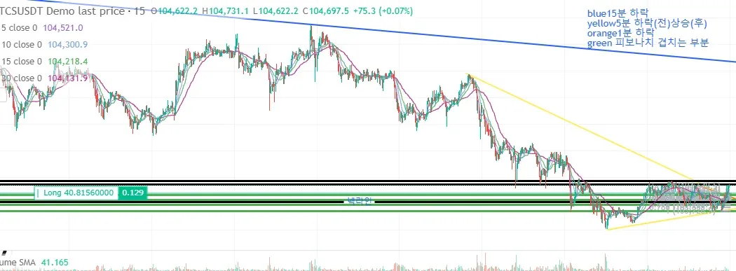 먼저 15분봉을 기준으로 추세선을 그었습니다.
