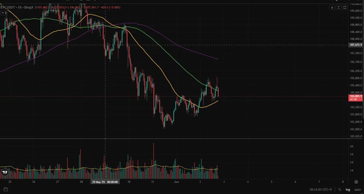 비트코인 1시간봉... 여기서 지금 하락한 추세선에 피보나치를 그어보면...