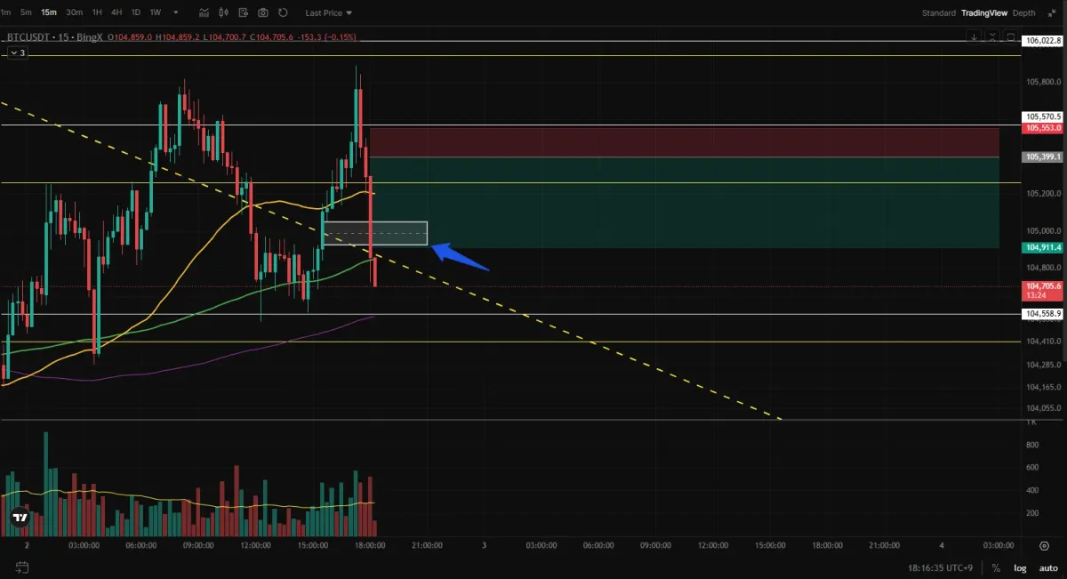 15분봉의 제일 가까운 FVG에서 저항받겠거니 해서 그쯤에다 대충 익절가 정해놓고 기다렸는데....