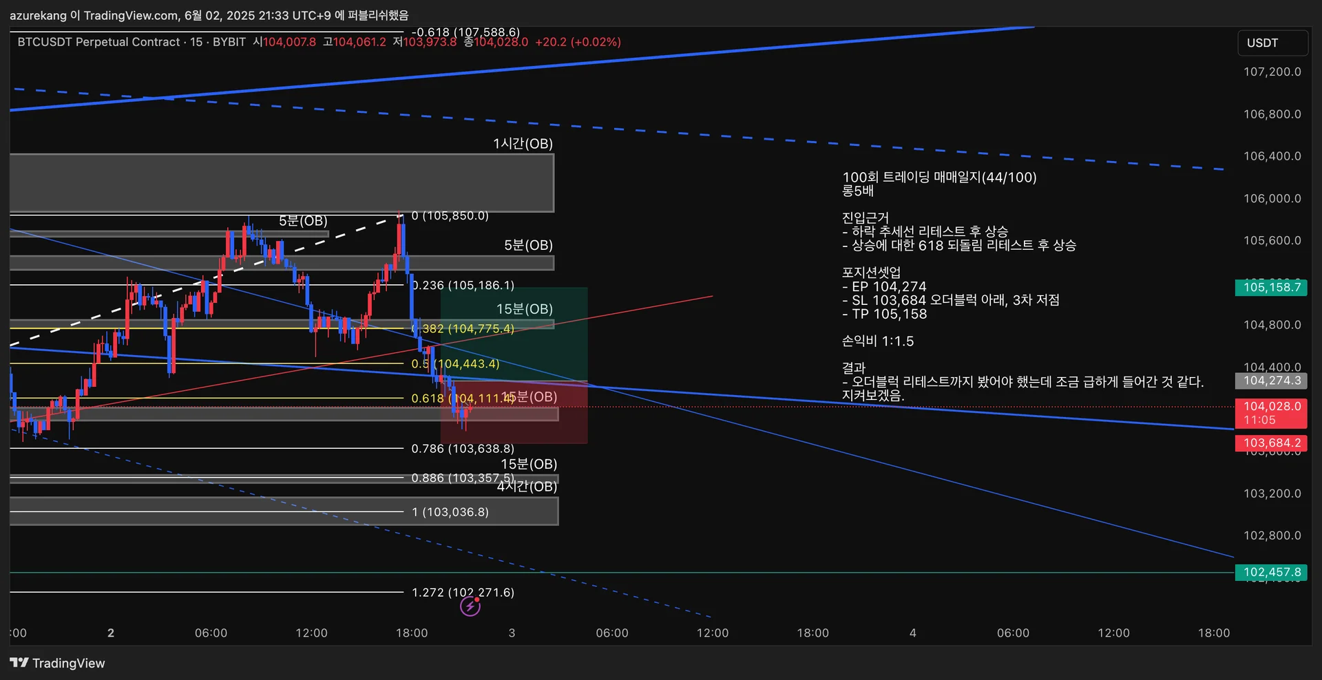 - 오더블럭 리테스트까지 봤어야 했는데 조금 급하게 들어간 것 같다.