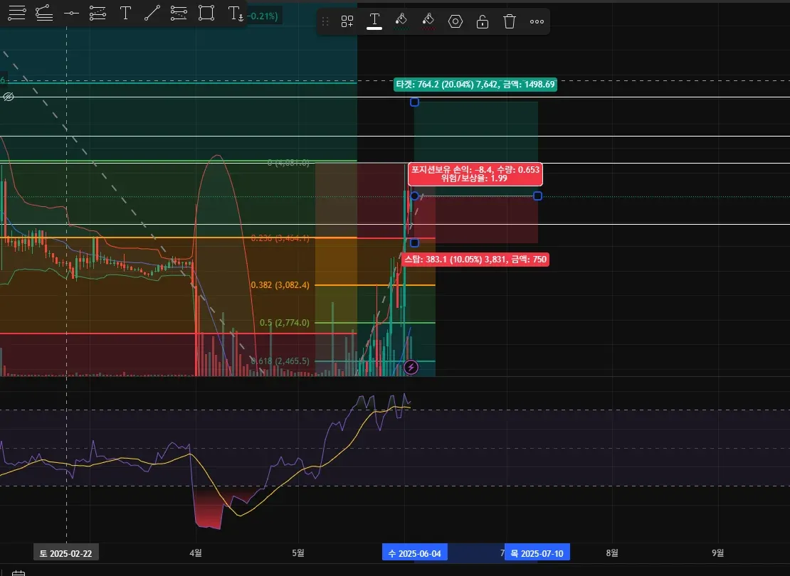 1) 유의미한 지지저항선 작도 후 손익비를 고려해 익절손절선 설정