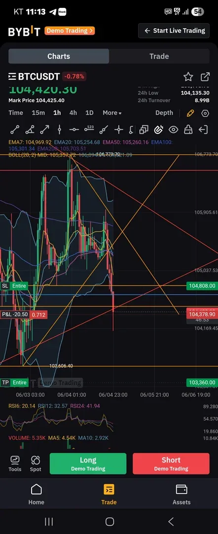 성급한 숏 진입 원하는 자리가 나와 진입을 하려하니 빠른 하락으로 후진입, 지켜보고 리테스트에 진입 하였어도 익절이 가능 했습니다. 또한 Tp라인 설정 잘못하였습니다.