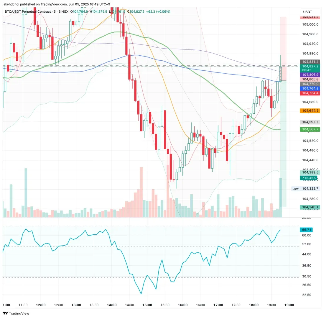 - 5분봉 100이평선 저항(을 예상했지만 이미 200이평선 도달)