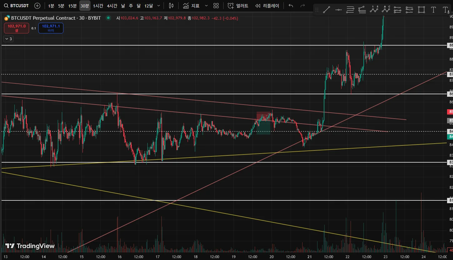 로스 값으로 설정한 지점을 찍고 항상 돌아오게 되어 매매에 스트레스도 받고, 다른 매매법을 시도해봐야 하나 고민하고 있었다.