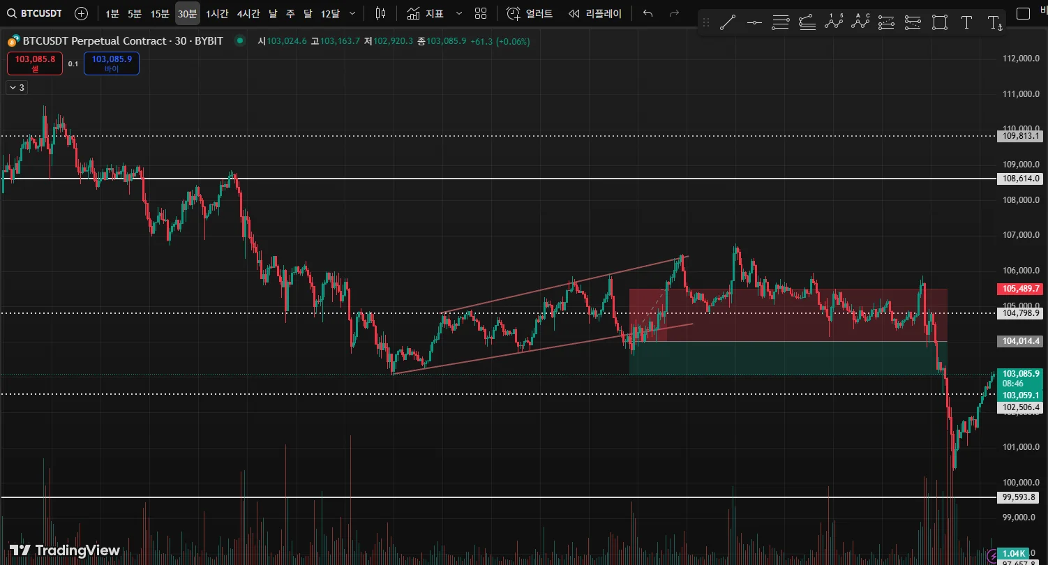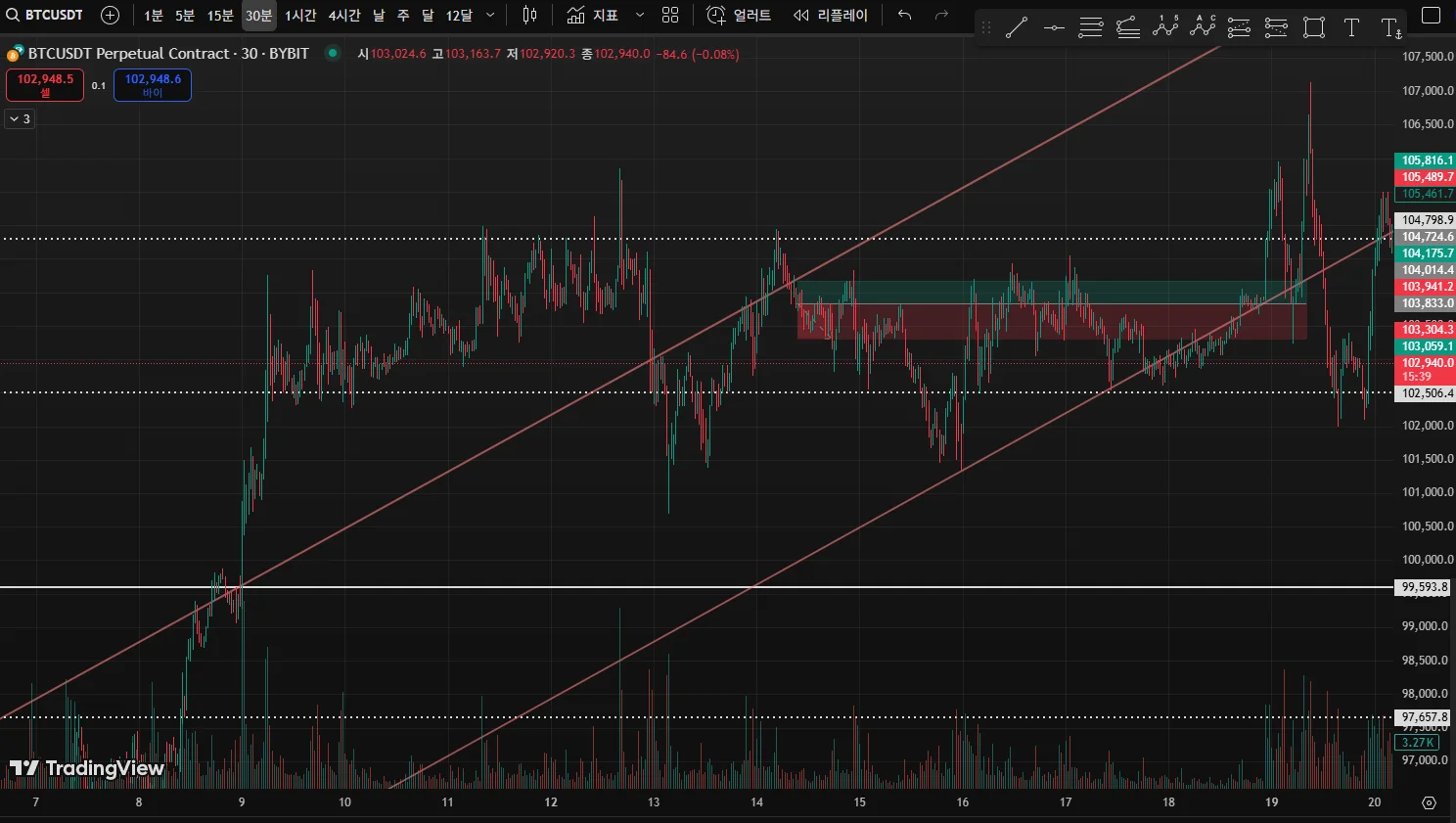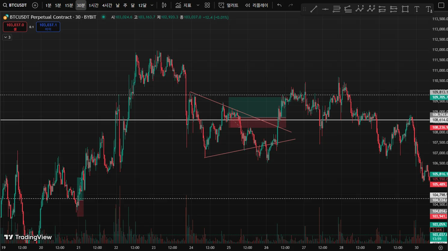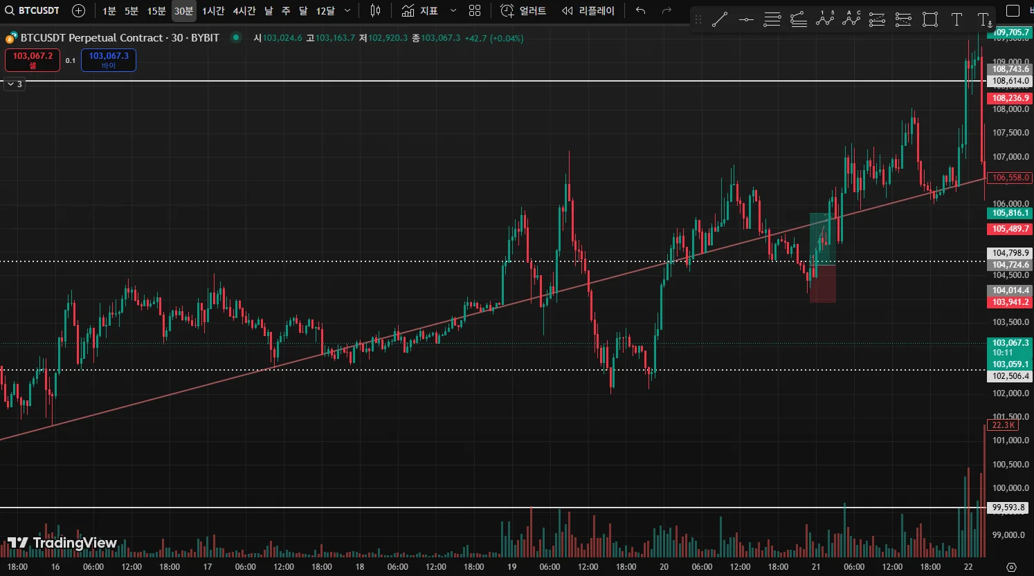 결론적으론 큰 추세의 상승/하락을 전제로 잡아두고, 로스 값을 설정하지 않는 매매 시나리오를 이어 나가보고 있다.