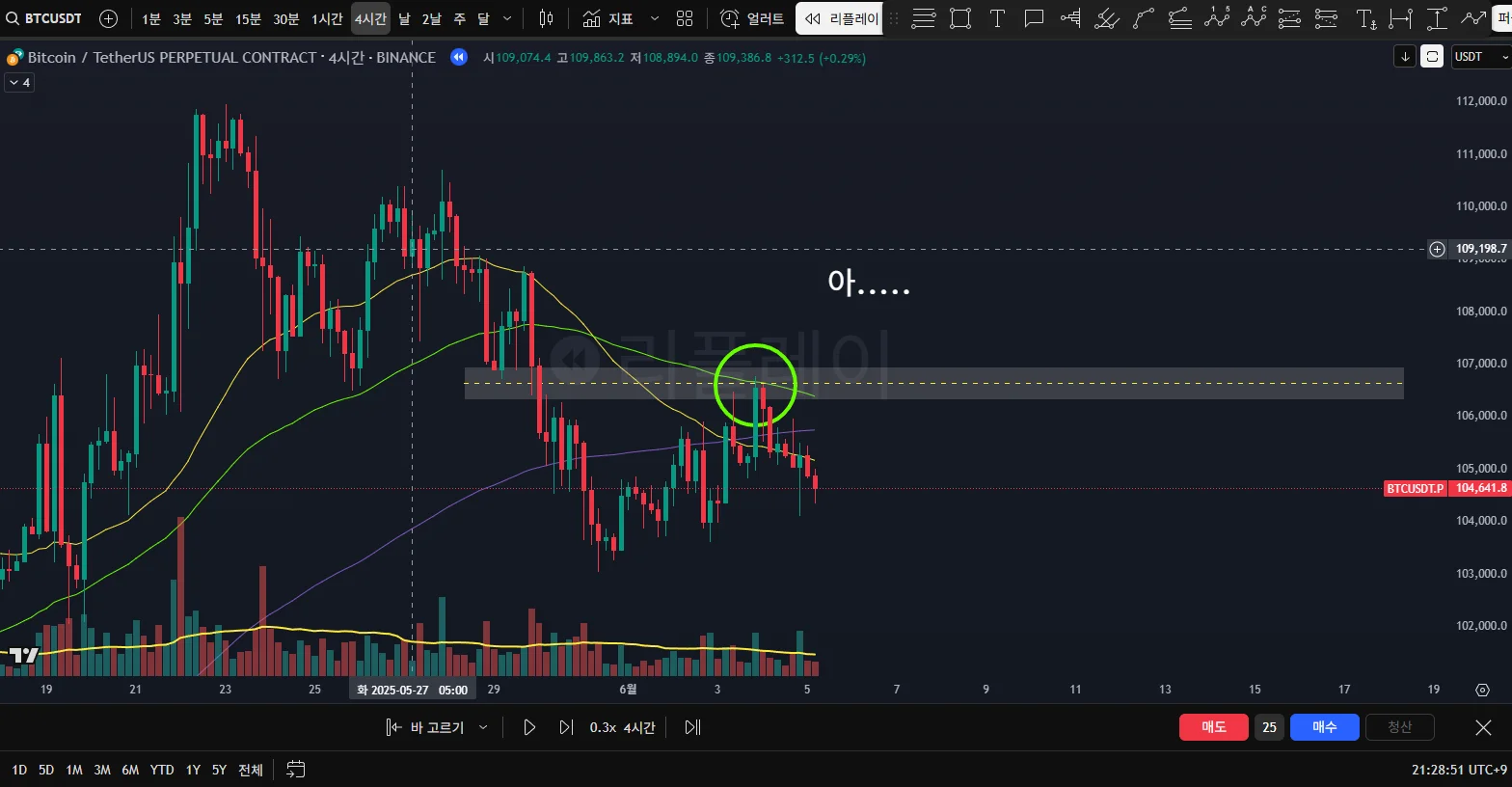 트레이딩뷰의 리플레이 기능으로 이 매매를 복기해둔다.