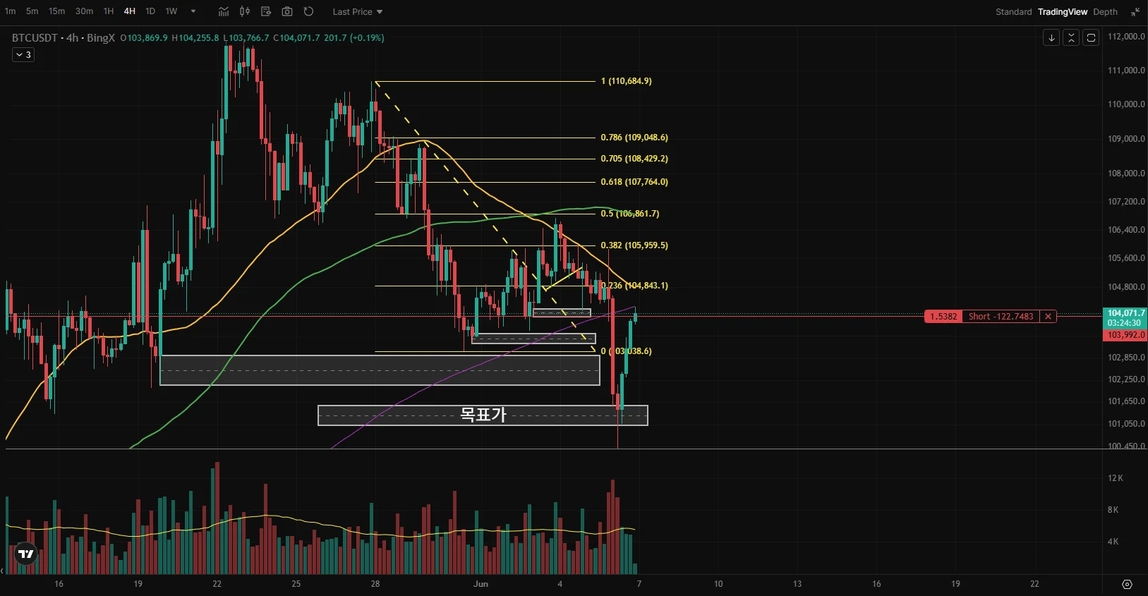 오더블럭에서 반등을 시작했고, 피보나치 0.5까지 반등했다.....