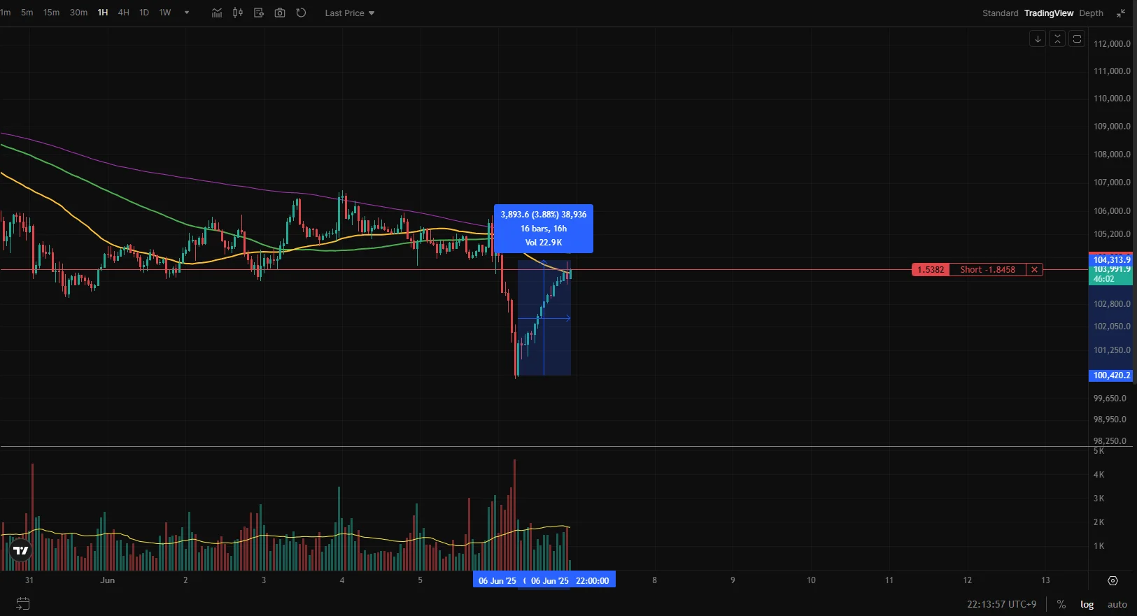 이것은 방금전 100회 트레이딩(7/100)에 바로 이어서 하는 매매이다. (방금 진입했다)