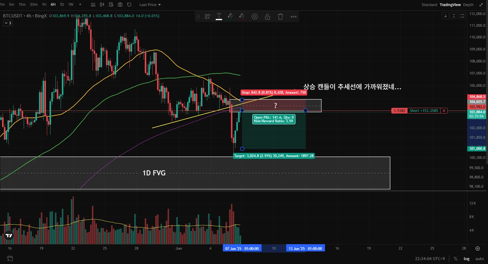 숏. (손절해도 상관없어 케케케케케. 안그래도 뇌동매매하고싶어 불끈불끈했다)