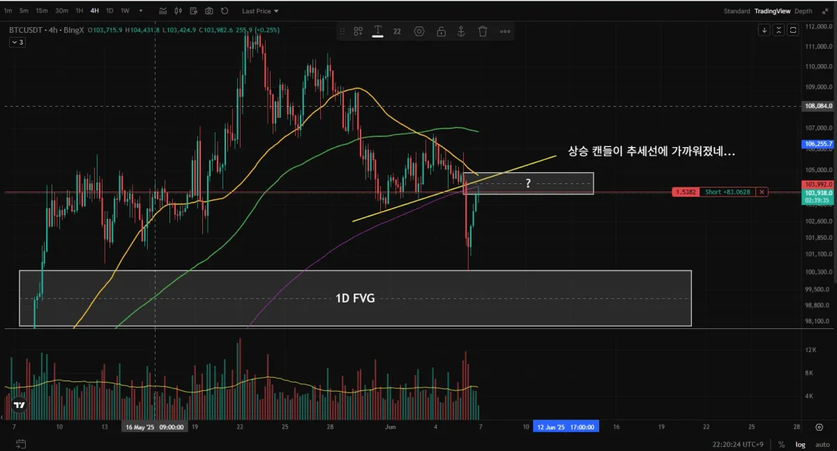 숏. (손절해도 상관없어 케케케케케. 안그래도 뇌동매매하고싶어 불끈불끈했다)